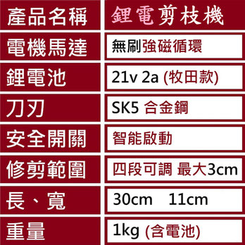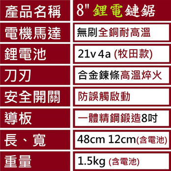 ● 只支援本賣場8"無刷鏈鋸及剪枝機
